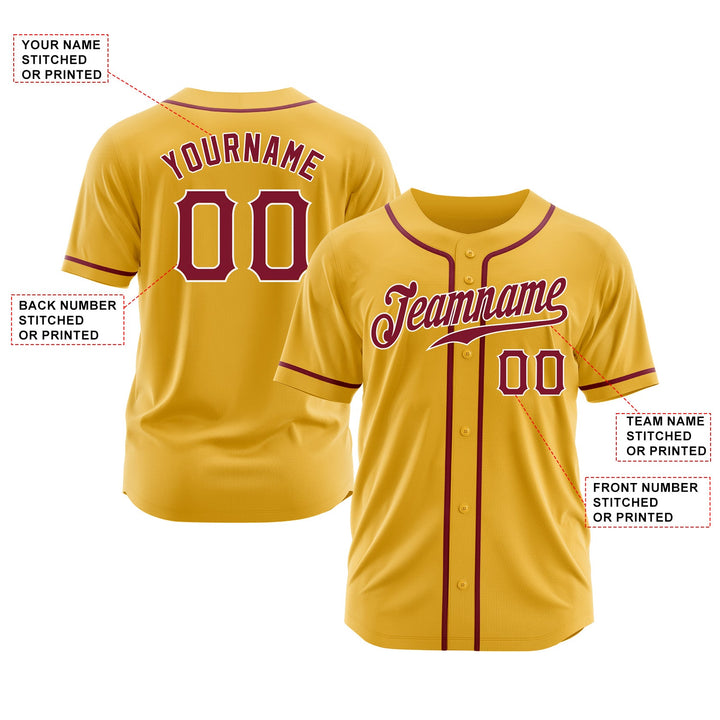Custom Gold Crimson-White Classic Style Authentic Sports Baseball Jersey