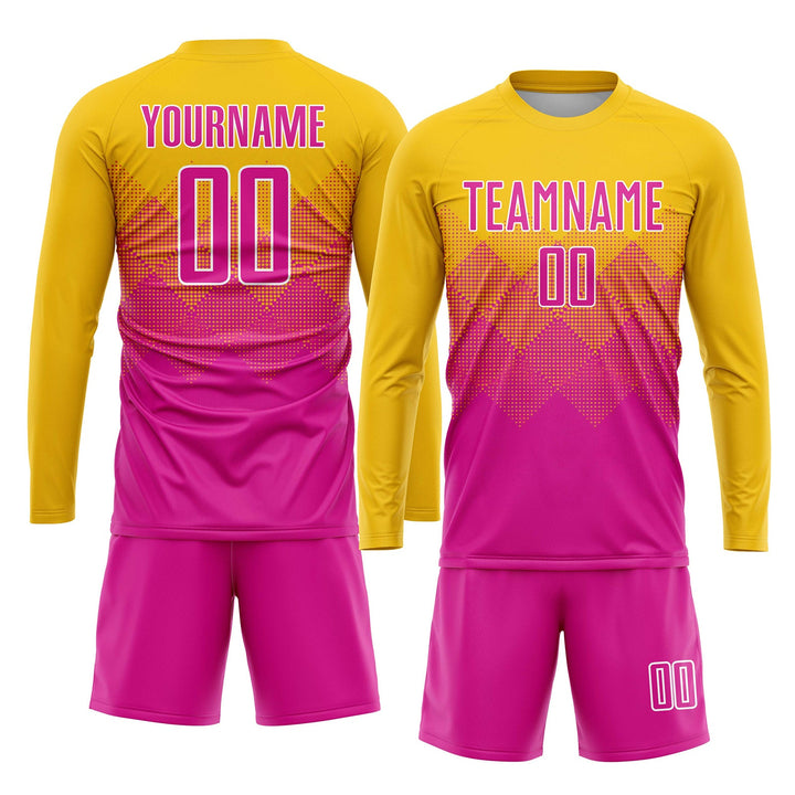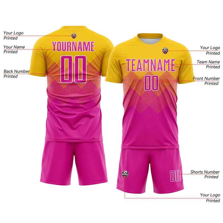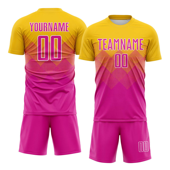 Custom Gold Deep Pink-White Classic Uniform Training Sets Soccer Jersey For Adults/Kids