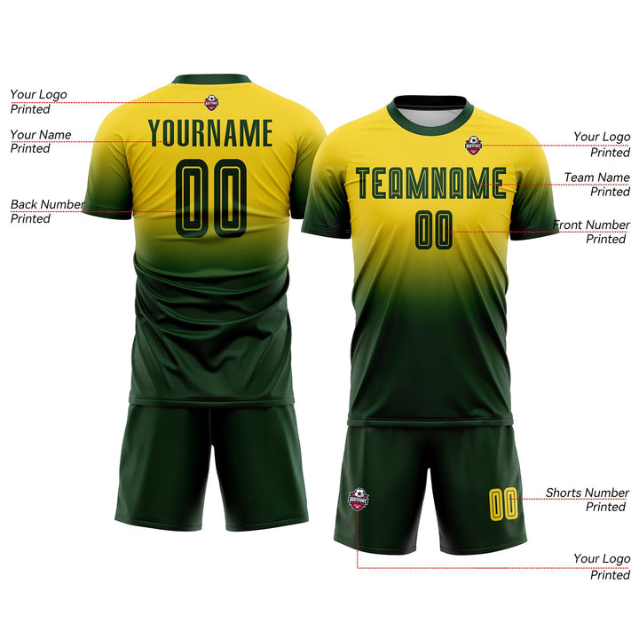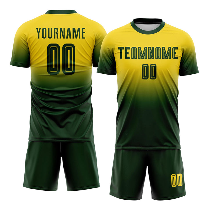 Custom Gold Green Fade Fashion Classic Uniform Training Sets Soccer Jersey For Adults/Kids