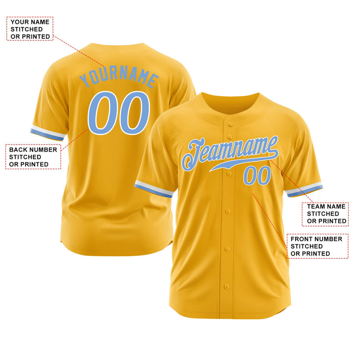 Custom Gold Light Blue-White Classic Style Authentic Sports Baseball Jersey