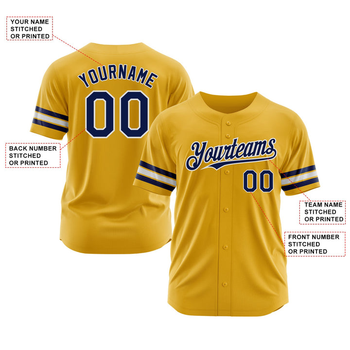 Custom Gold Navy-White Classic Style Authentic Sports Baseball Jersey