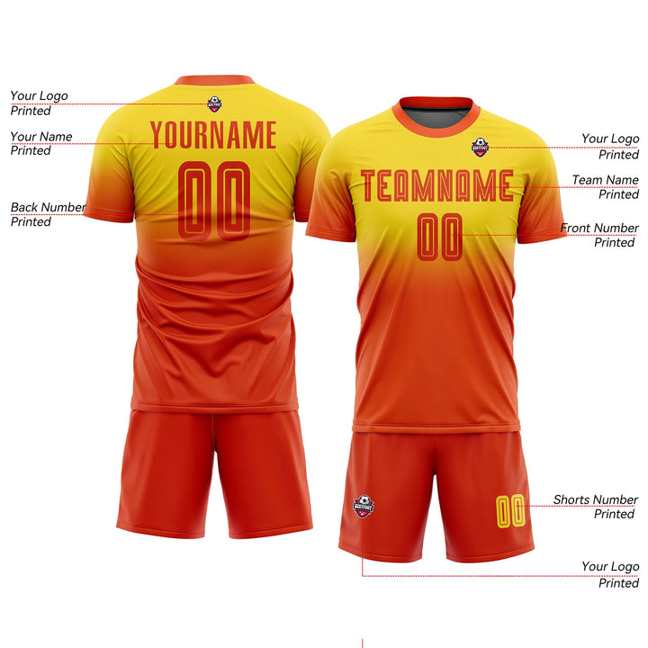 Custom Gold Orange Fade Fashion Classic Uniform Training Sets Soccer Jersey For Adults/Kids