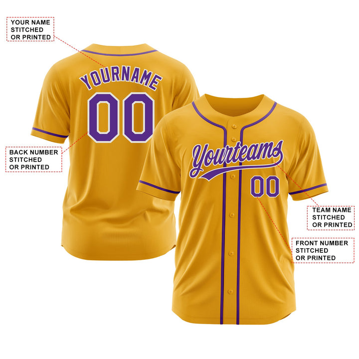 Custom Gold Purple-White Classic Style Authentic Sports Baseball Jersey