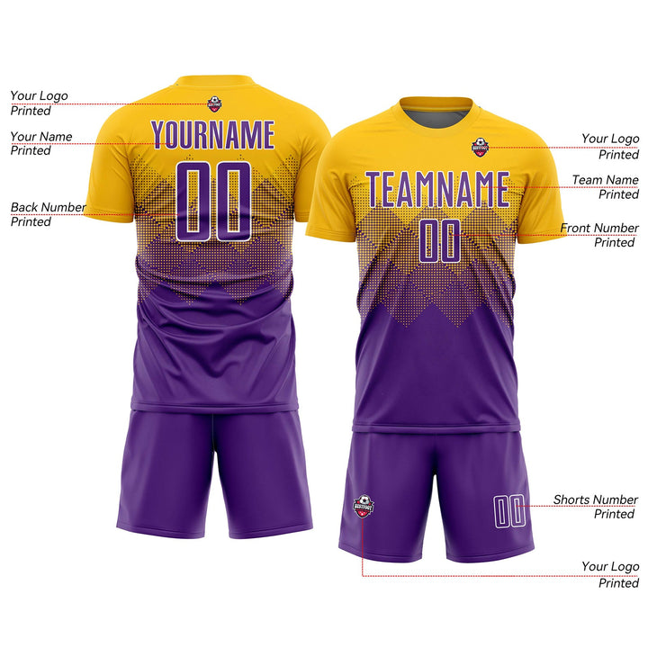 Custom Gold Purple-White Classic Uniform Training Sets Soccer Jersey For Adults/Kids