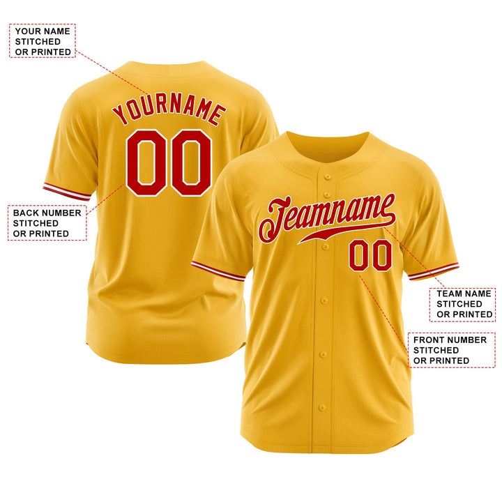 Custom Gold Red-White Classic Style Authentic Sports Baseball Jersey