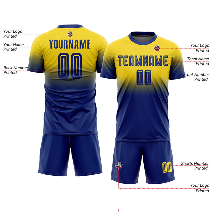 Custom Gold Royal Fade Fashion Classic Uniform Training Sets Soccer Jersey For Adults/Kids