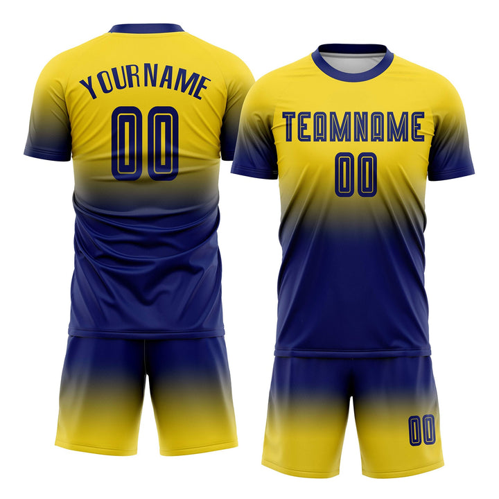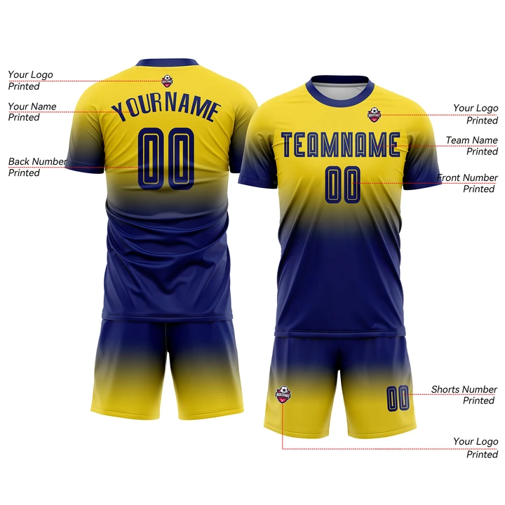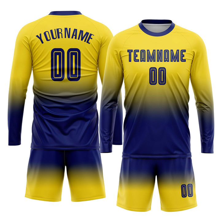 Custom Gold Royal Long Sleeve Fade Fashion Classic Uniform Training Sets Soccer Jersey For Adults/Kids
