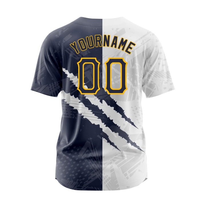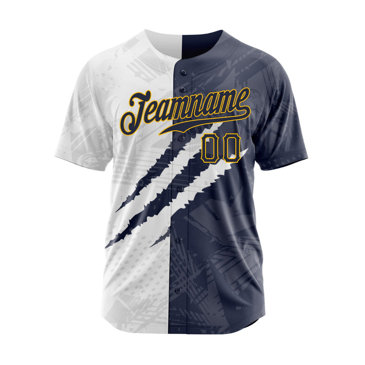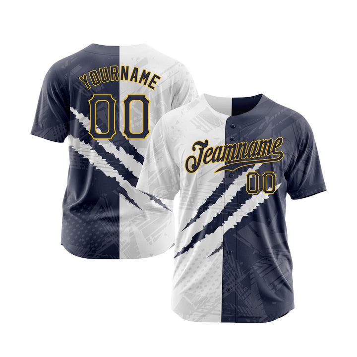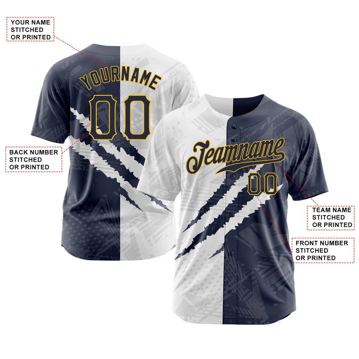 Custom Graffiti Pattern Navy-Gold 3D Scratch Classic Style Authentic Sports Baseball Jersey
