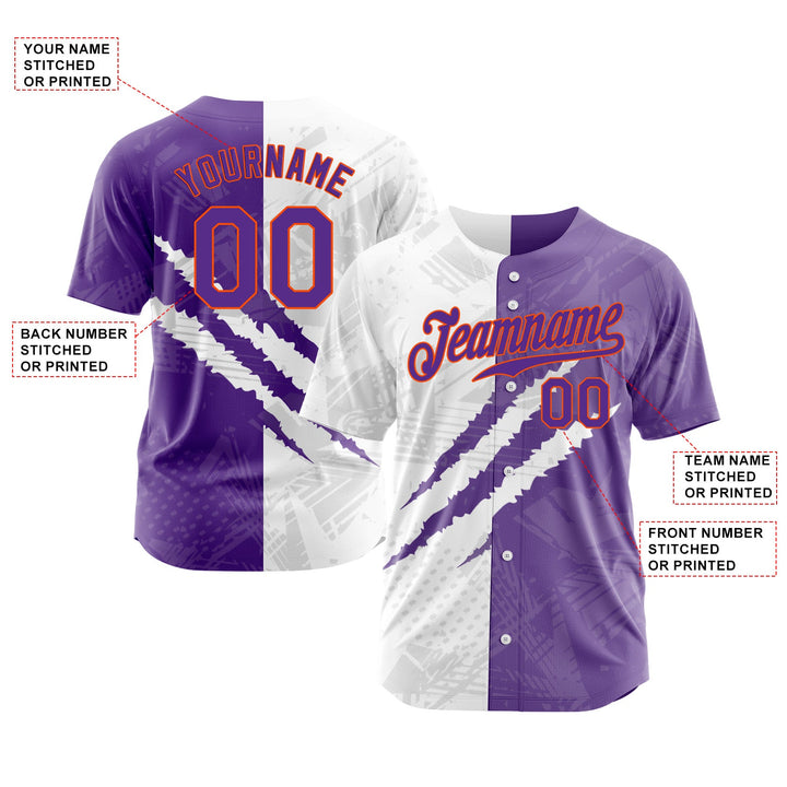 Custom Graffiti Pattern Purple-Orange 3D Scratch Classic Style Authentic Sports Baseball Jersey