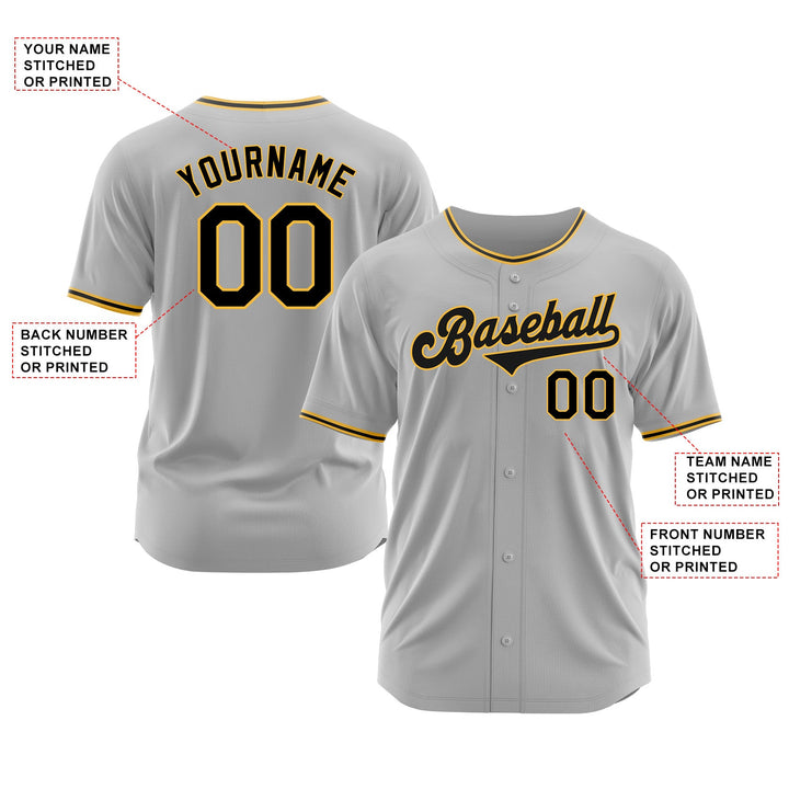 Custom Gray Black-Gold Classic Style Authentic Sports Baseball Jersey