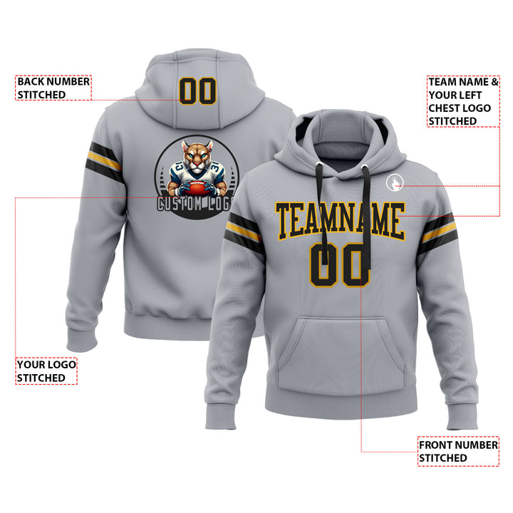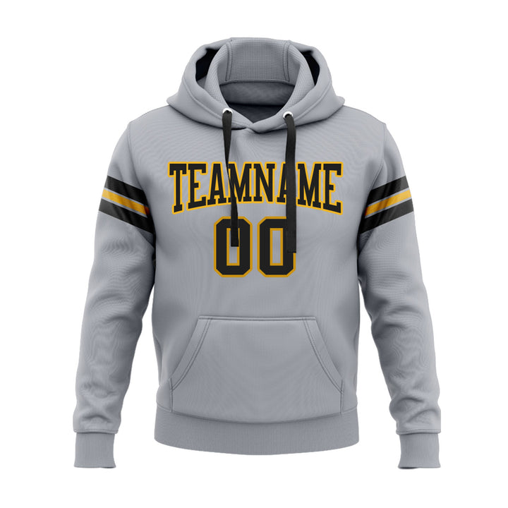 Custom Gray Black-Gold Personalized Sports Team Embroidered Pullover Hoodie
