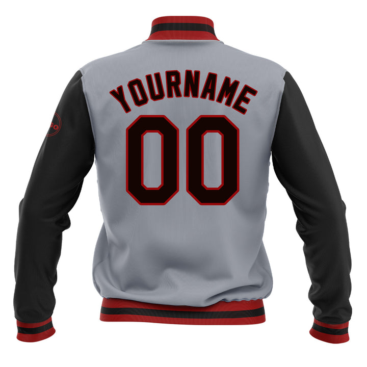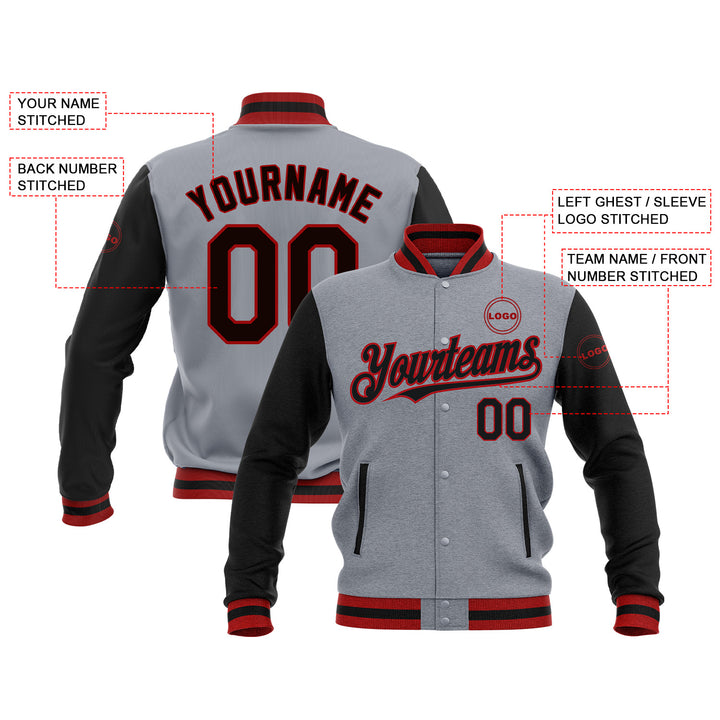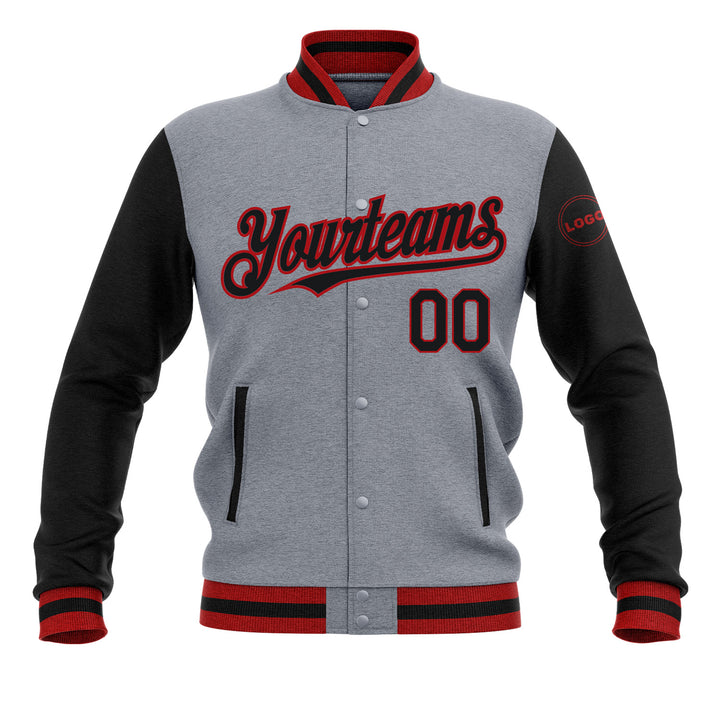 Custom Gray Black-Red Classic Style Two Tone Bomber Varsity Letterman Embroidered Jacket