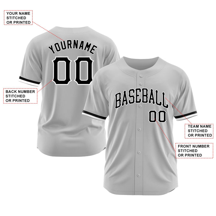 Custom Gray Black-White Classic Style Authentic Sports Baseball Jersey