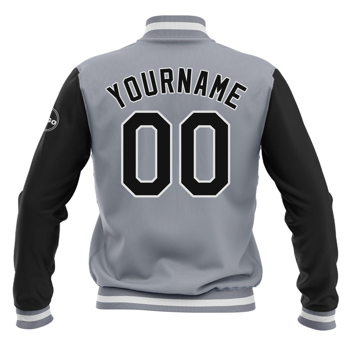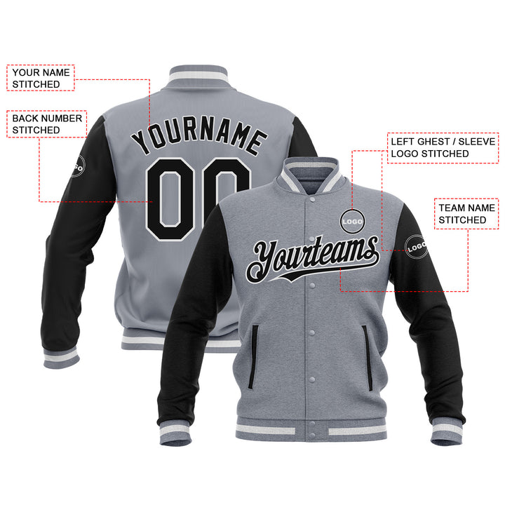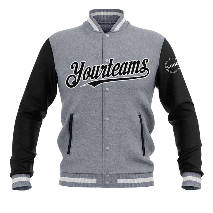 Custom Gray Black-White Two Tone Bomber Varsity Letterman Embroidered Jacket