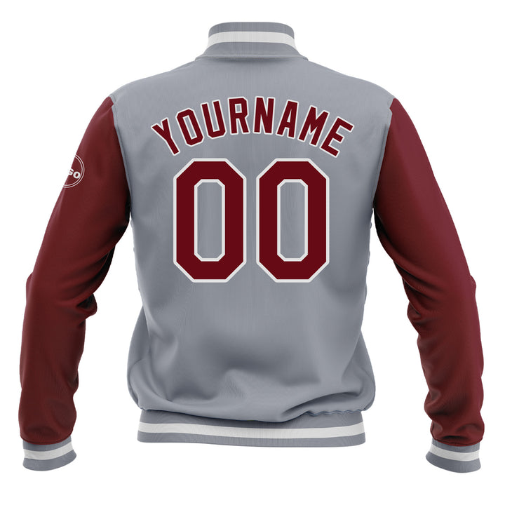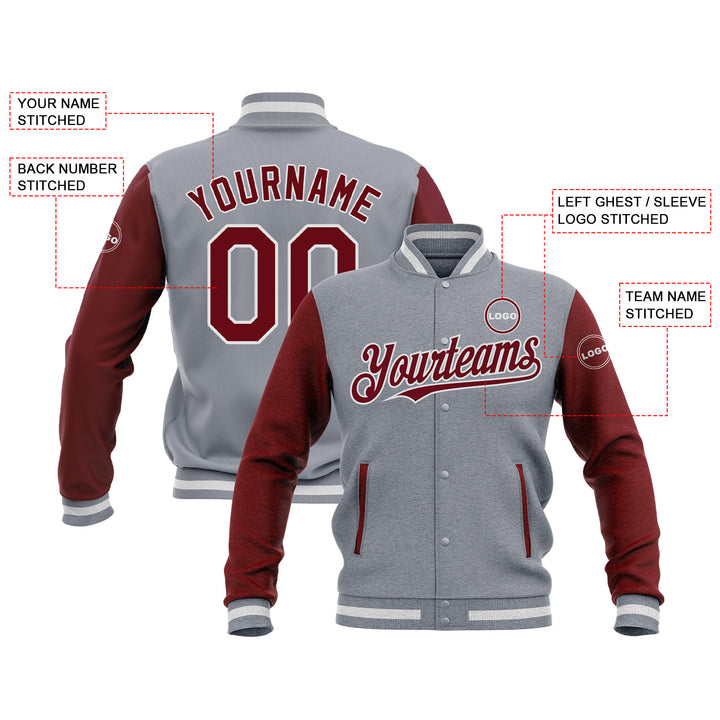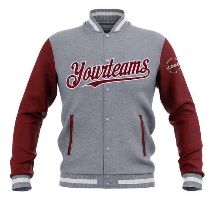 Custom Gray Crimson-White Two Tone Bomber Varsity Letterman Embroidered Jacket