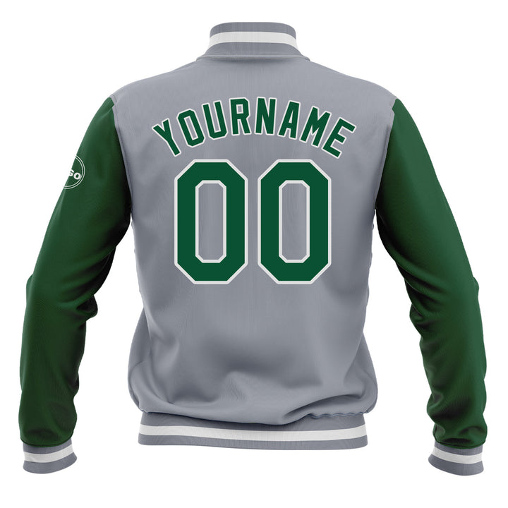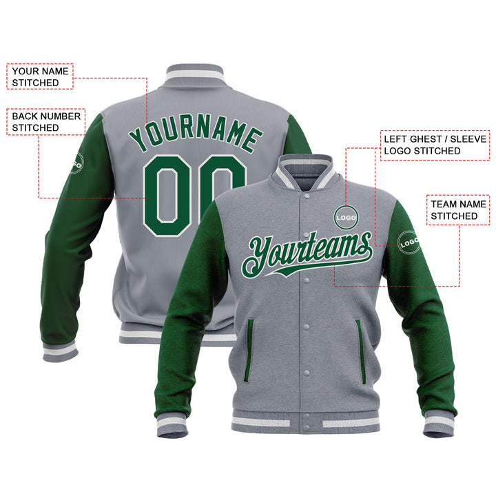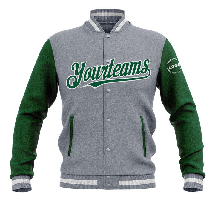Custom Gray Kelly Green-White Two Tone Bomber Varsity Letterman Embroidered Jacket