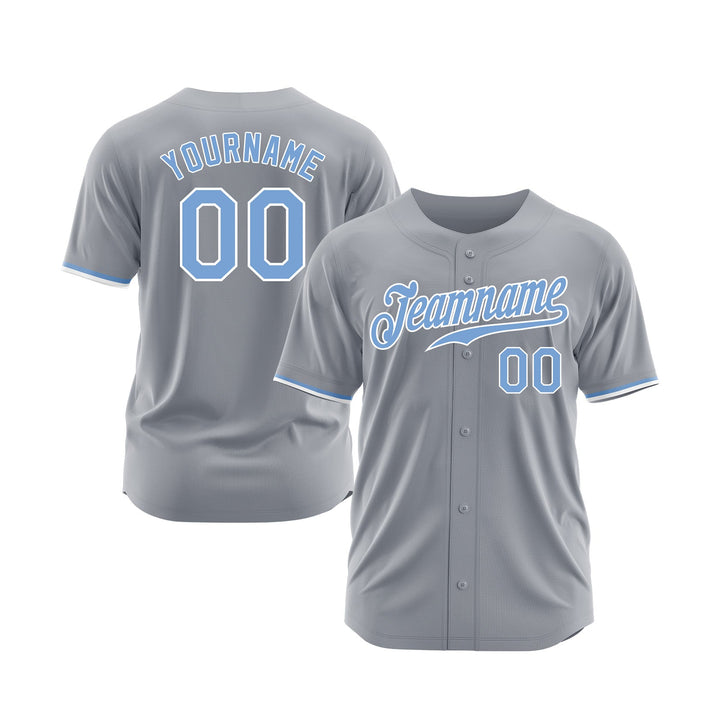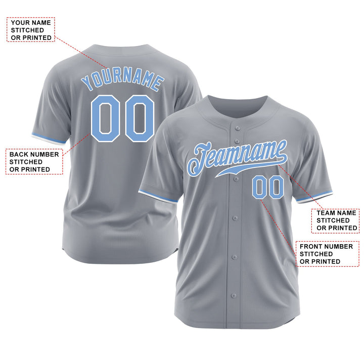 Custom Gray Light Blue-White Classic Style Authentic Sports Baseball Jersey
