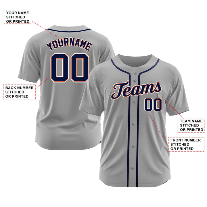 Custom Gray Navy-Orange Classic Style Authentic Sports Baseball Jersey