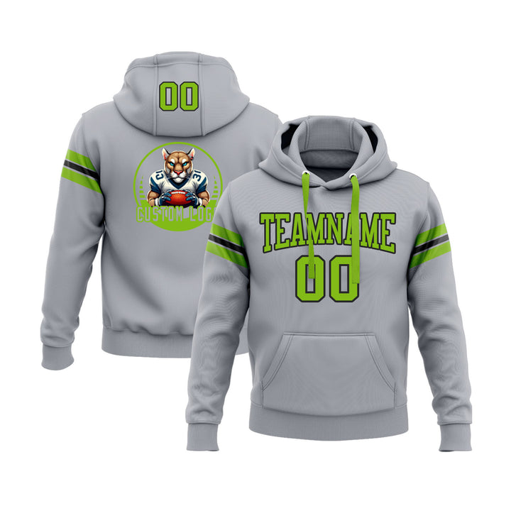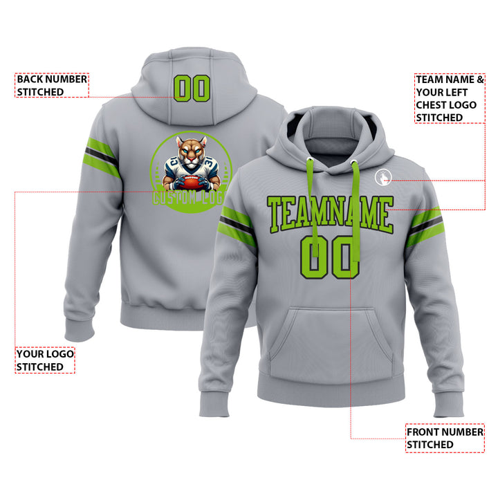 Custom Gray Neon Green-Black Personalized Sports Team Embroidered Pullover Hoodie