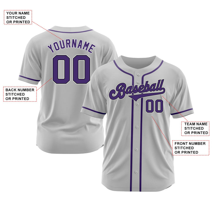 Custom Gray Purple-Black Classic Style Authentic Sports Baseball Jersey