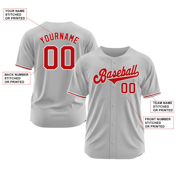 Custom Gray Red-White Classic Style Authentic Sports Baseball Jersey