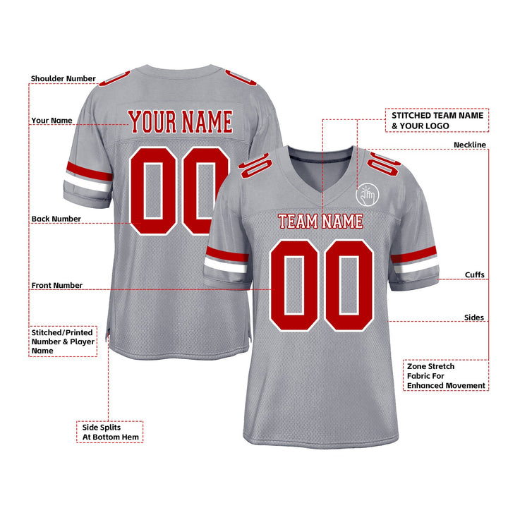 Custom Gray Red-White Mesh Classic Style Authentic Sports Football Jersey