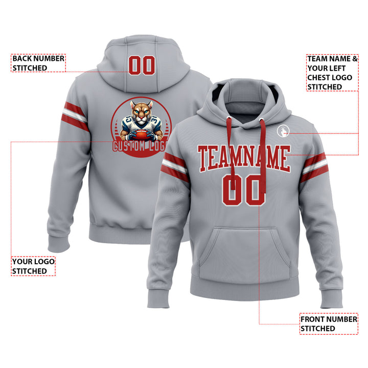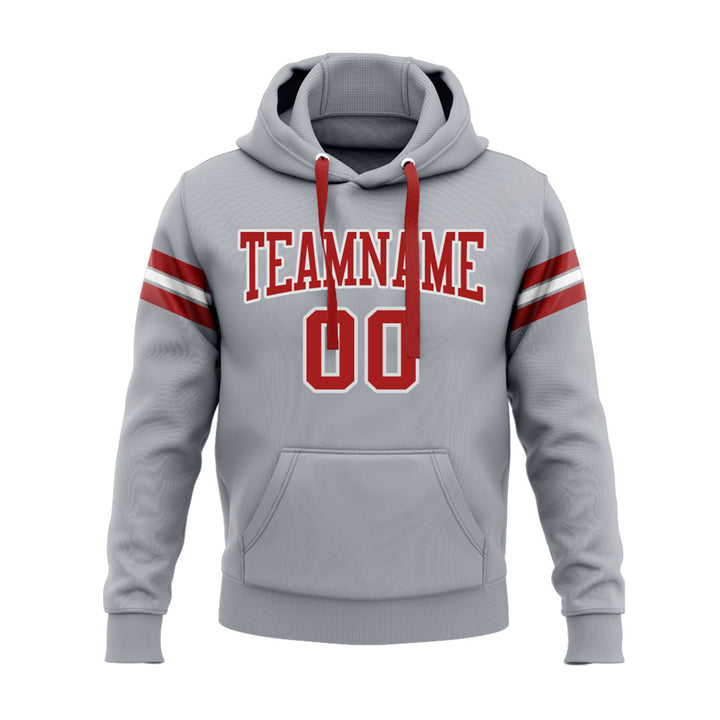 Custom Gray Red-White Personalized Sports Team Embroidered Pullover Hoodie