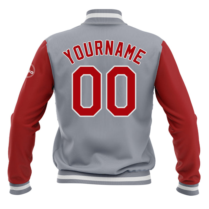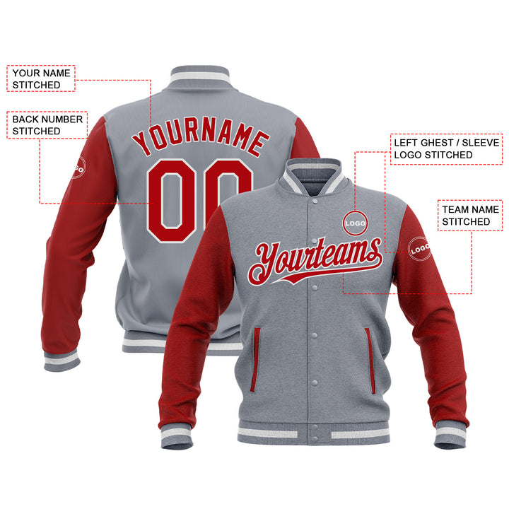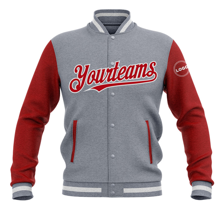 Custom Gray Red-White Two Tone Bomber Varsity Letterman Embroidered Jacket