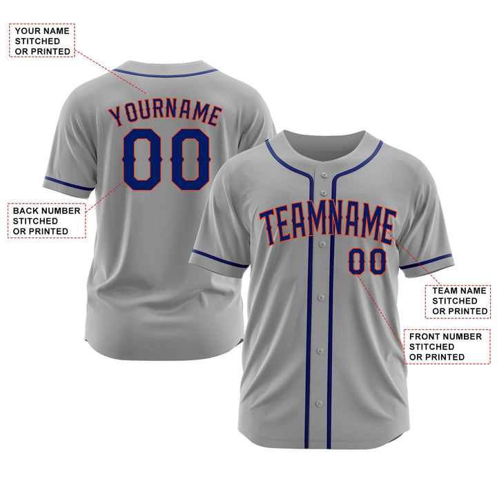 Custom Gray Royal-Orange Classic Style Authentic Sports Baseball Jersey