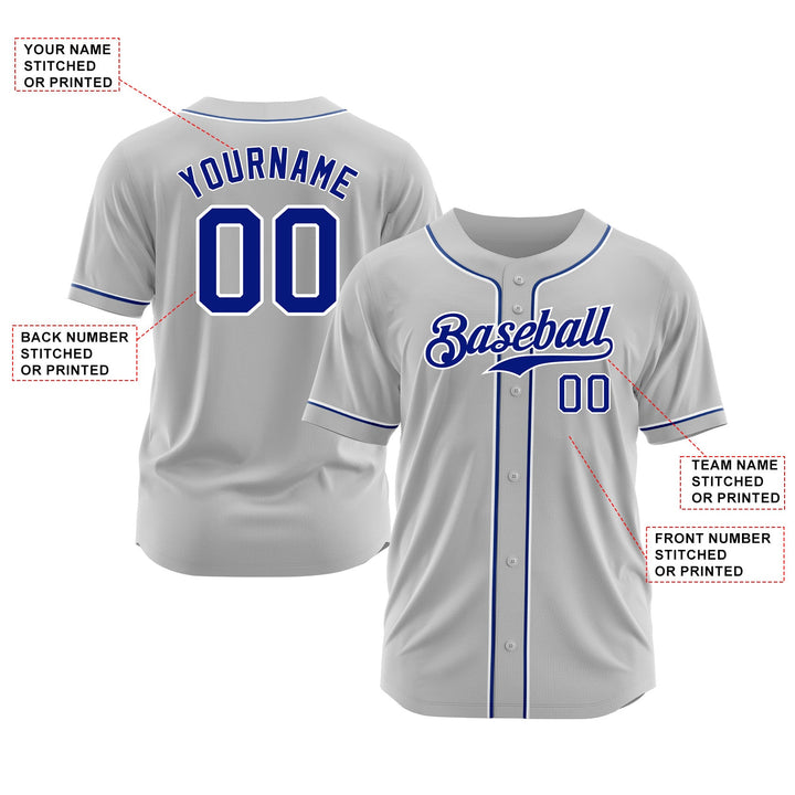 Custom Gray Royal-White Classic Style Authentic Sports Baseball Jersey