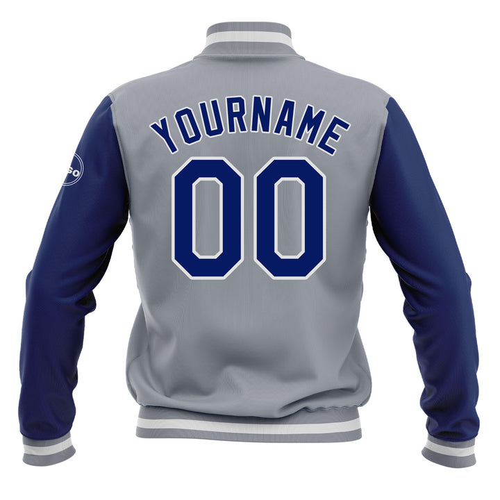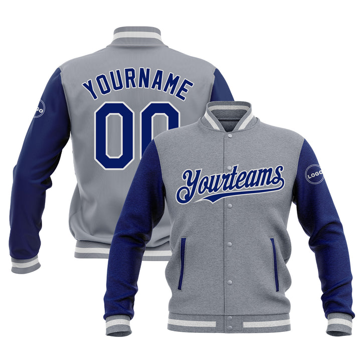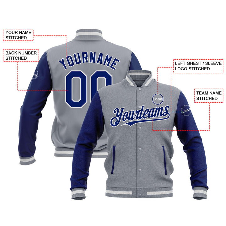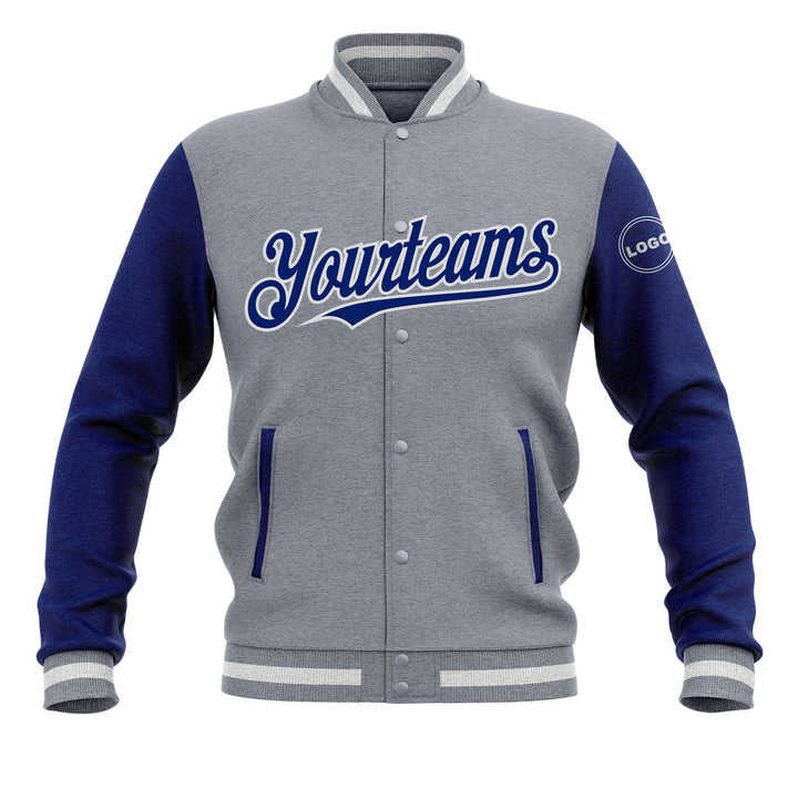 Custom Gray Royal-White Two Tone Bomber Varsity Letterman Embroidered Jacket