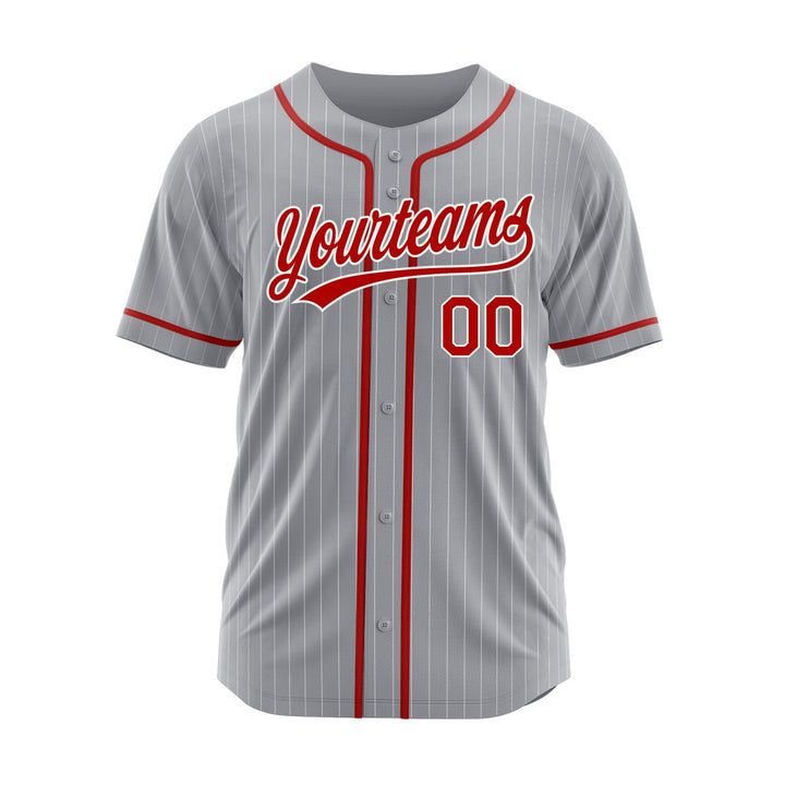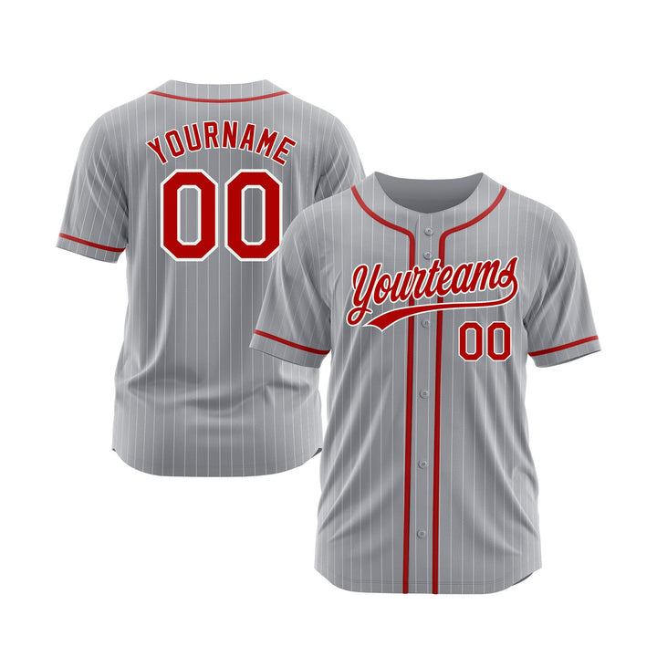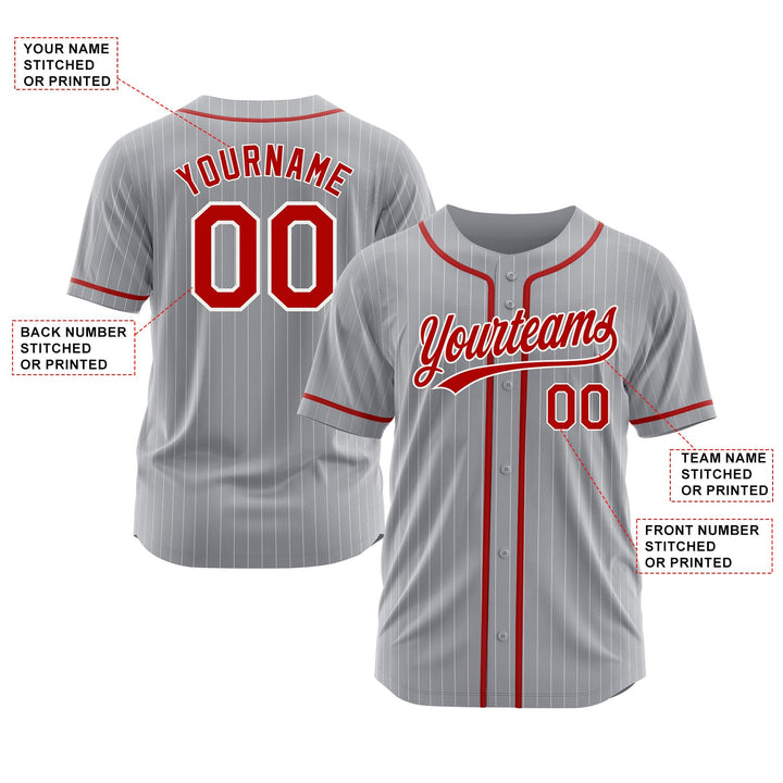 Custom Gray White Pinstripe Red Classic Style Authentic Sports Baseball Jersey