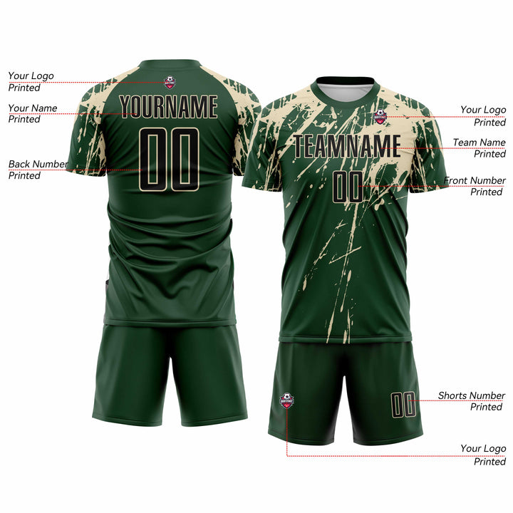 Custom Green Black-Cream Classic Uniform Training Sets Soccer Jersey For Adults/Kids