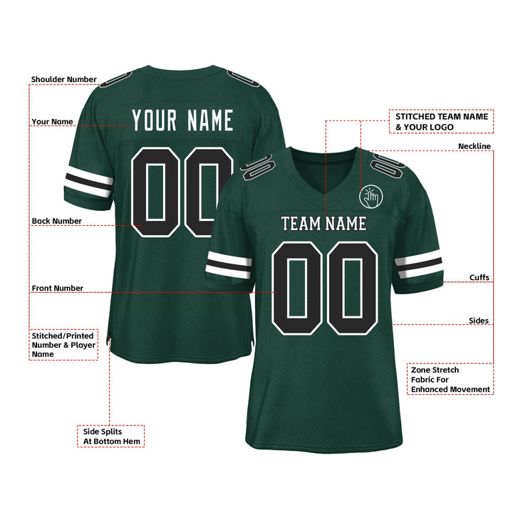Custom Green Black-White Mesh Classic Style Authentic Sports Football Jersey