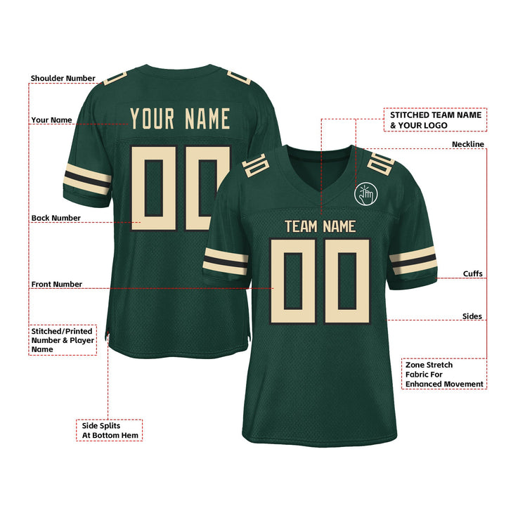 Custom Green Cream-Black Mesh Classic Style Authentic Sports Football Jersey