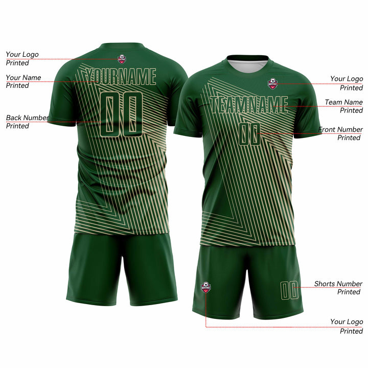 Custom Green Cream Lines Classic Uniform Training Sets Soccer Jersey For Adults/Kids