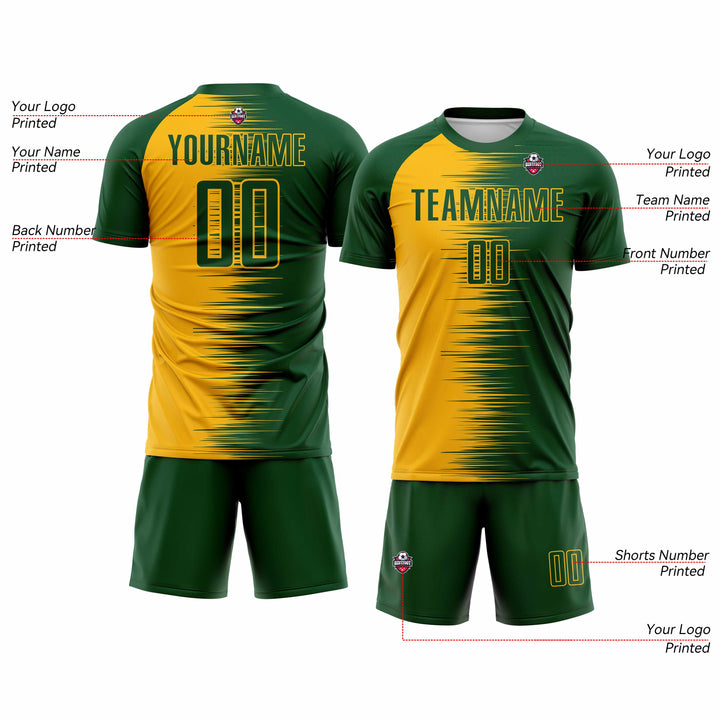 Custom Green Gold-White Gradient Line Classic Uniform Training Sets Soccer Jersey For Adults/Kids