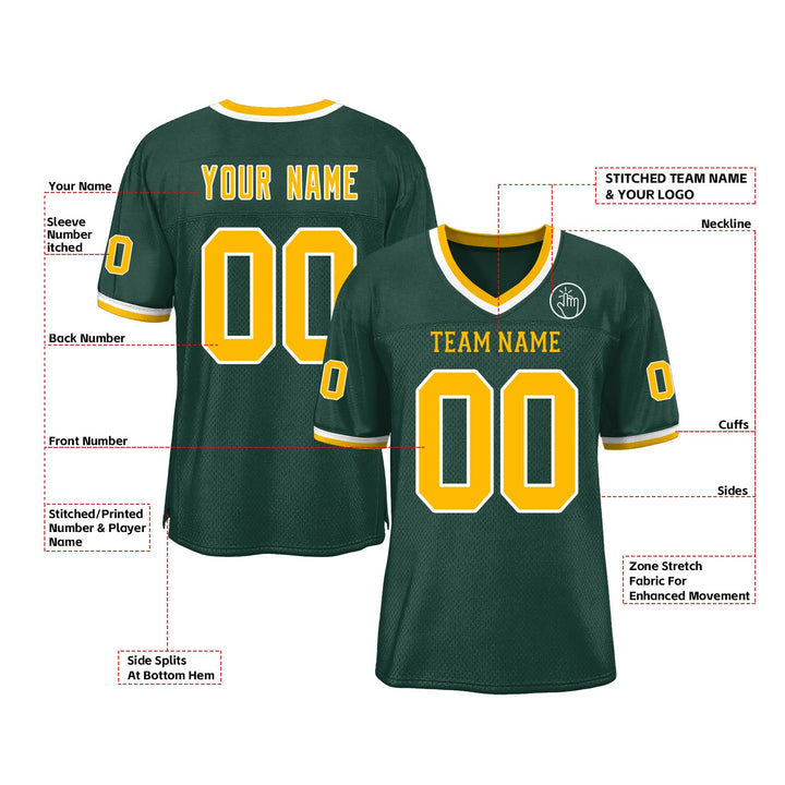 Custom Green Gold-White Mesh Classic Style Authentic Sports Football Jersey