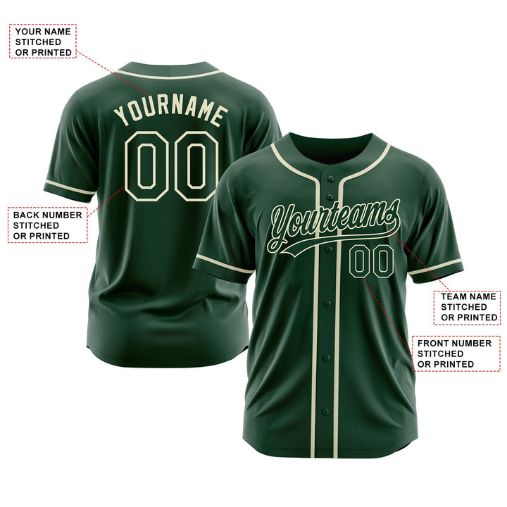 Custom Green Green-Cream Classic Style Authentic Sports Baseball Jersey