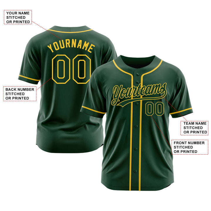Custom Green Green-Gold Classic Style Authentic Sports Baseball Jersey