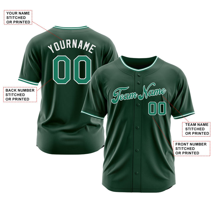 Custom Green Kelly Green-White Classic Style Authentic Sports Baseball Jersey