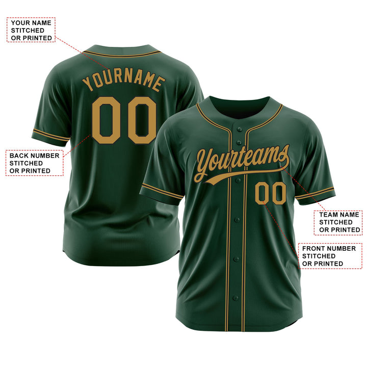 Custom Green Old Gold-Black Classic Style Authentic Sports Baseball Jersey