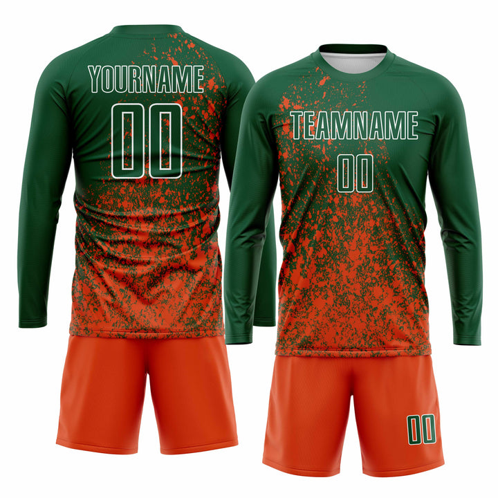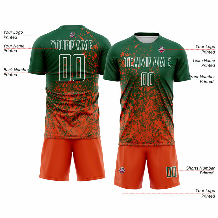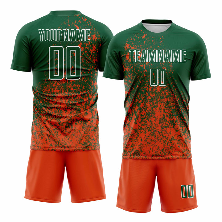 Custom Green Orange-White Abstract Fragment Art Classic Uniform Training Sets Soccer Jersey For Adults/Kids