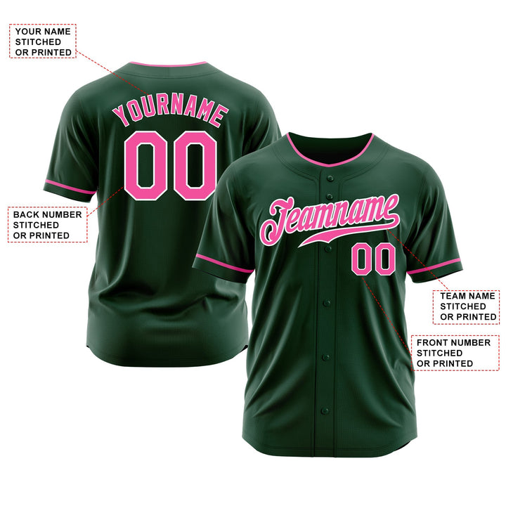 Custom Green Pink-White Classic Style Authentic Sports Baseball Jersey