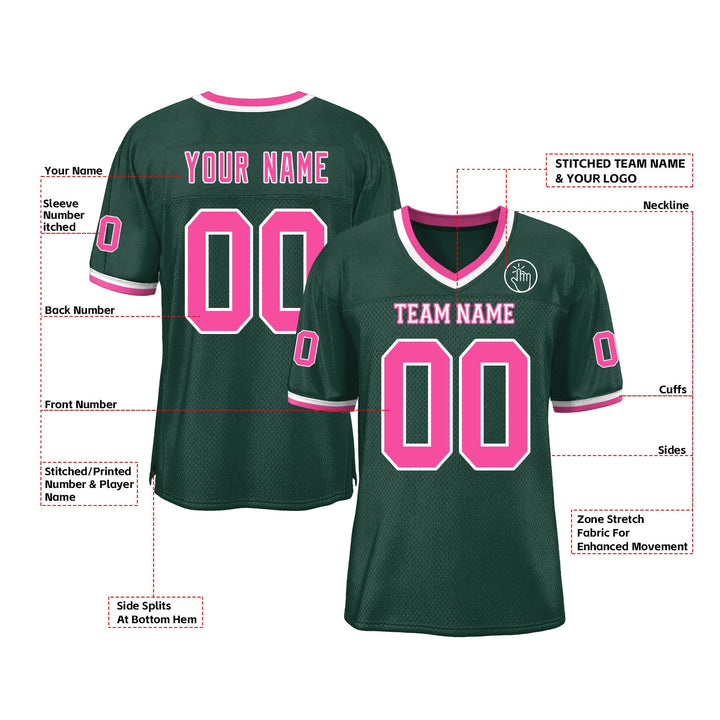 Custom Green Pink-White Mesh Classic Style Authentic Sports Football Jersey