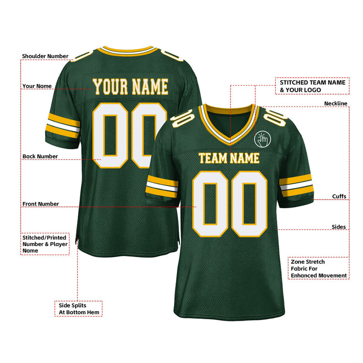 Custom Green White-Gold Mesh Classic Style Authentic Sports Football Jersey