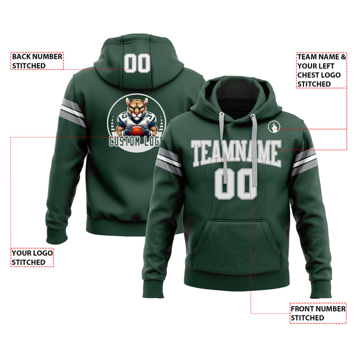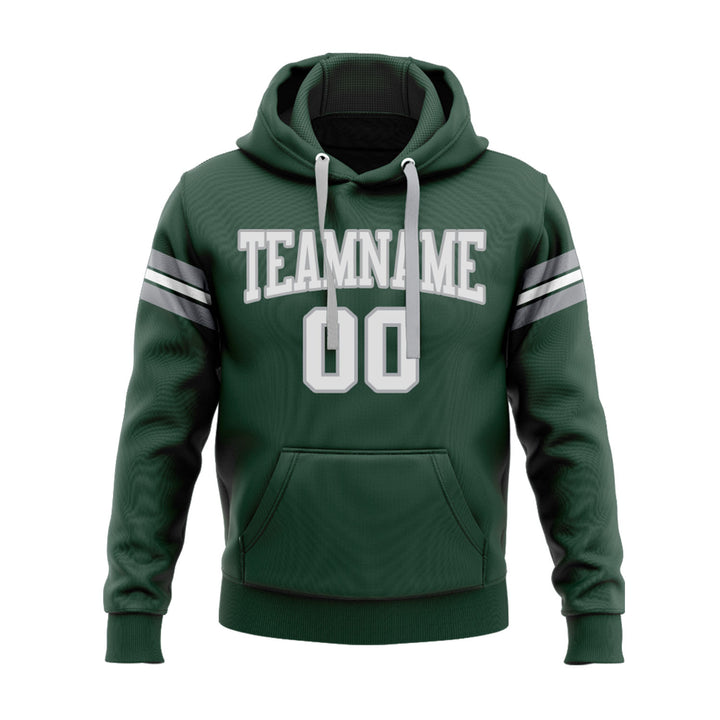 Custom Green White-Gray Personalized Sports Team Embroidered Pullover Hoodie
