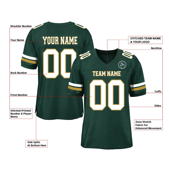Custom Green White-Old Gold Mesh Classic Style Authentic Sports Football Jersey