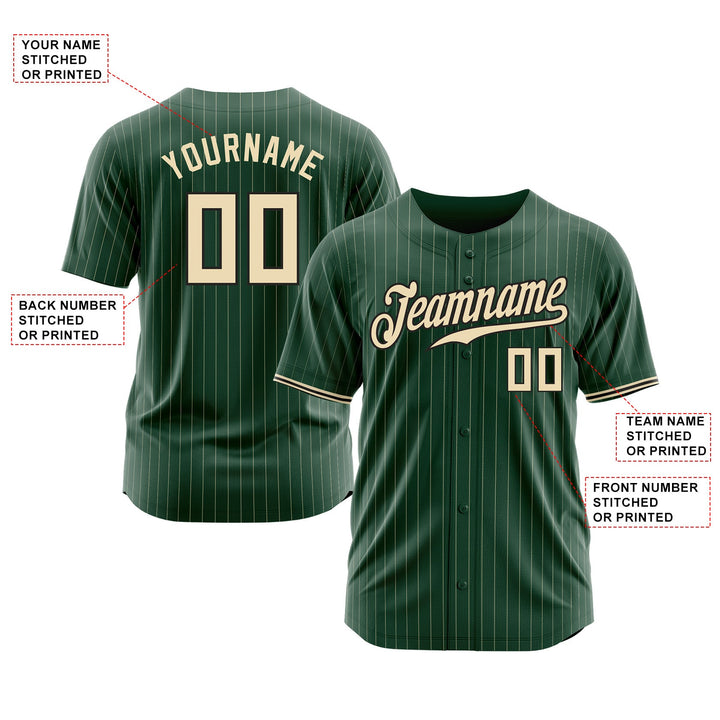 Custom Green White Pinstripe Cream-Black Classic Style Authentic Sports Baseball Jersey