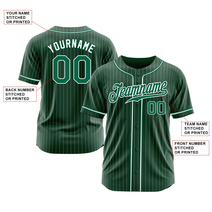 Custom Green White Pinstripe Kelly Green-White Classic Style Authentic Sports Baseball Jersey